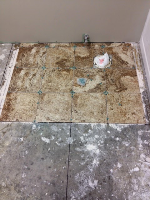 Our weekend was a much slower pace than usual. Justin and I are getting over a bug and we still aren't feeling 100%. On a happier note - the drywallers finished! Only one week late!! (hear the sarcasm? Not the best experience. However, it's done and we are moving on.) Even with a delay, we were able to paint and start tiling. I still need to squeeze into the linen closet to paint the back and finish the ceiling trim. I think I'll wait until the tiling is done though. Along with working on the bathroom, we took a few naps, had dinner and pinochle with the in-laws and did the normal weekend chores. Let's hope this bug is kicked soon!